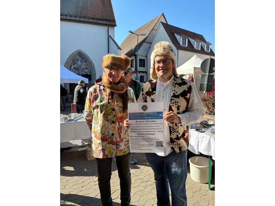 In diesem Jahr hatten die Mitglieder des Lions Clubs Bad Buchau-Federsee und der Förderkreis der Freunde Lions Bad Buchau-Federsee e.V. einen Stand auf dem Riedlinger Flohmarkt. Dabei wurden gebrauchte und neue Artikel für den guten Zweck verkauft. Durch den Förderkreis der Freunde Lions Bad Buchau-Federsee e.V. ist mit den Einnahmen nun das soziale Engagement von Pfarrer Dr. Emanuel Sawadogo in Burkina Faso über den „Treffpunkt Weltkirche“ unterstützt worden. „Das Engagement rund um den Aufbau eines Bildungssystems sowie die Schneiderschule für junge Mädchen in Burkina Faso ist klasse. Bei seinen Besuchen in Riedlingen konnten wir Einblicke in die Arbeit von Herrn Pfarrer Dr. Sawadogo erhalten und freuen uns, diese Arbeit nun unterstützen zu können“, so Matthias Scheible, Präsident der Lions Bad Buchau-Federsee. Nachdem sich die Lions bereits 2024 am Christkindlesmarkt in Riedlingen mit einem eigenen Stand engagiert hatten, war der Flohmarktstand die zweite activity im Amtsjahr 2024/2025 mit der Gelder für den guten Zweck erwirtschaftet werden konnten. Der gemeinnützige "Förderkreis der Freunde Lions Bad Buchau-Federsee e.V." ist vom Lions Club gegründet worden, um insbesondere Menschen in der Region und bei Bedarf auch weltweit mit Geldern aus den acitivties, Projekten und auch Spenden zu unterstützen. Der Lions Club Bad Buchau-Federsee wurde 1988 gegründet.