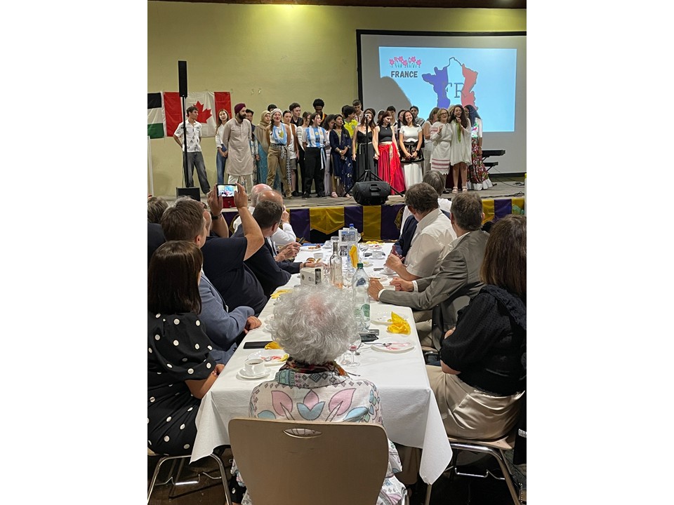 Im Rahmen der Abschlussveranstaltung führen die Jugendlichen entweder allein, oder gemeinsam Gesangs-,oder Musik-, oder Tanzdarbietungen auf, wobei es sich stets um Stücke aus deren jeweiligem Heimatland in deren Heimatsprache handelt. Damit die Teilnehmer/ Gäste der Abschlussveranstaltung die Texte verstehen, wurden diese in die französische Sprache übersetzt und per PowerPoint auf die Leinwand geworfen.