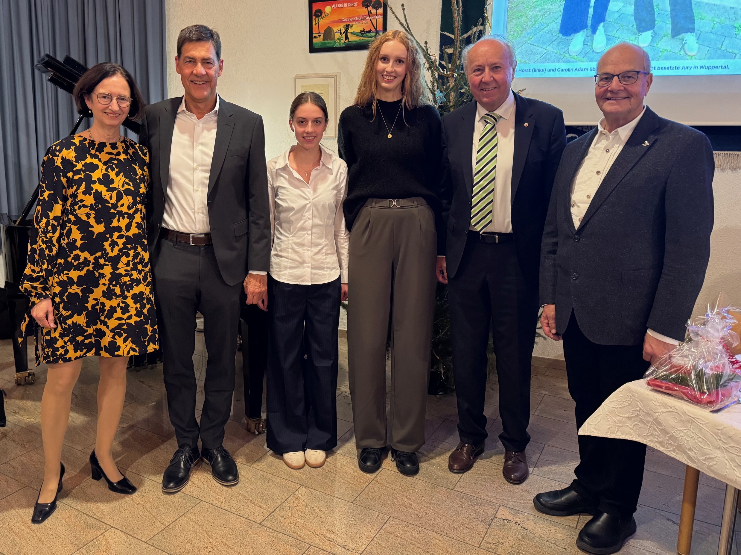 „ Talent allein reicht nicht aus, um beim Bundeswettbewerb von Jugend Musiziert mit einem 2. Preis ausgezeichnet zu werden, dazu gehört auch eine große Portion Fleiß, Engagement, Beharrlichkeit und eine gut entwickelte Persönlichkeit. Dazu beglüchwünschen wir Sie und wollen Sie mit unserem Kunst- und Kuluturpreis unterstützen „führte der diesjährige Präsident des Lions Clubs Hans-Joachim Brenner bei seiner Laudatio auf die beiden Preisträgerinnen Leonie Horst ( Gesang )und Carolin Adam ( Klavier ).aus.