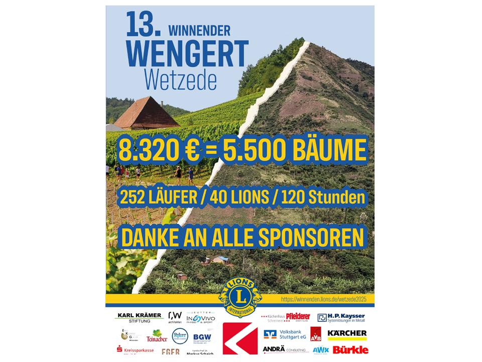 Was bleibt von diesem Nachmittag? Die 13. Wengert Wetzede des Lions Club Winnenden ist nicht nur – wie auf den T-Shirts ein Aufdruck steht – ein „durchlaufender Posten“, sondern eine bleibende Erinnerung und Unterstützung, die ankommt.