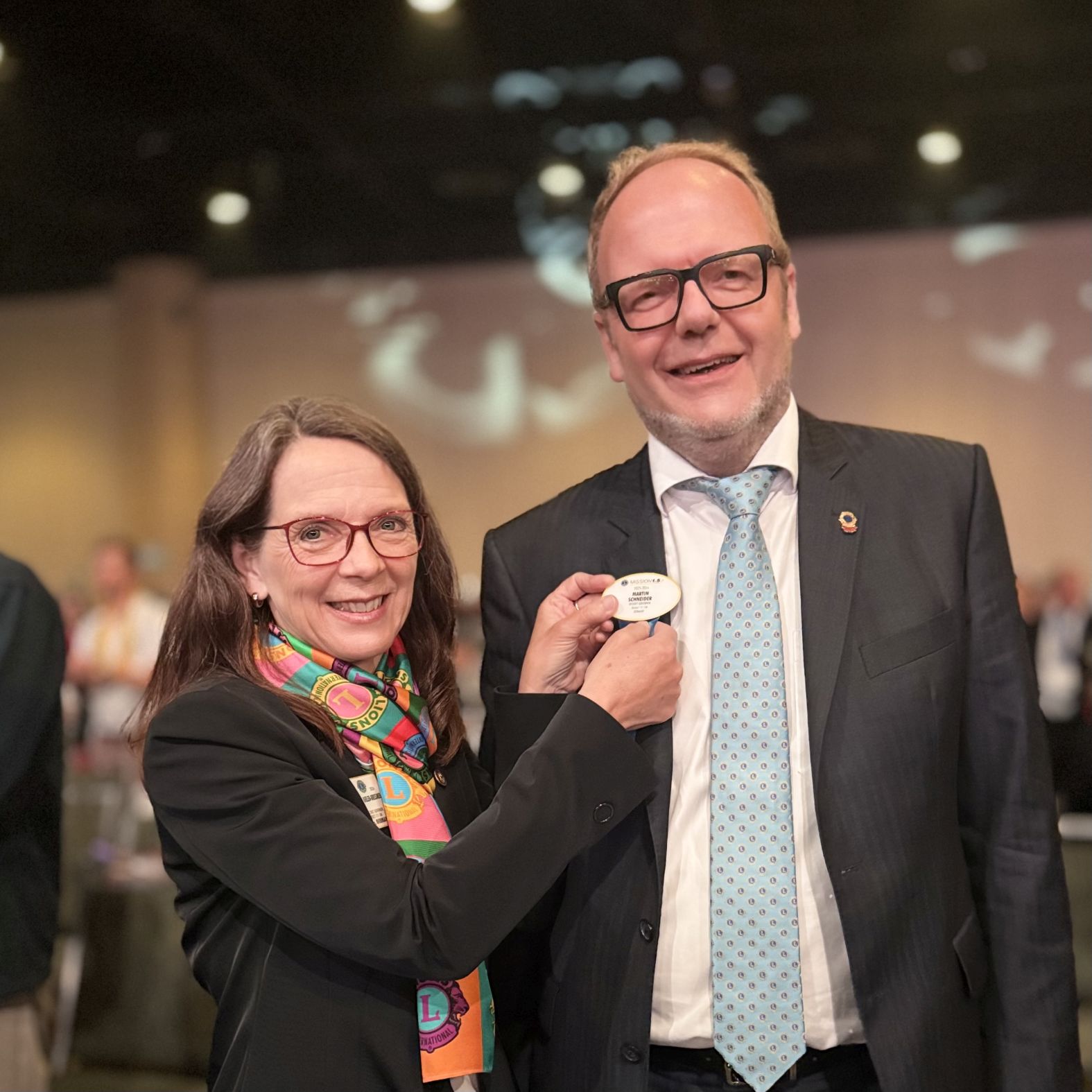 Am 3. Tag der Convention war es dann so weit: die offizielle Amtseinführung der anwesenden Distrikt Governor aus allen Nationen und Distrikten stand an. Martin Schneider, unser Distrikt Governor für das Lionsjahr 2025/ 26 wurde dabei von Susanne Gieler Breßmer (LC Göppingen, 1. VDG) und Matthias Matzner (LC Netzwerk-Süd) begleitet und mit großer Freude als neuer DG für den Distrikt 111 SM begrüßt.