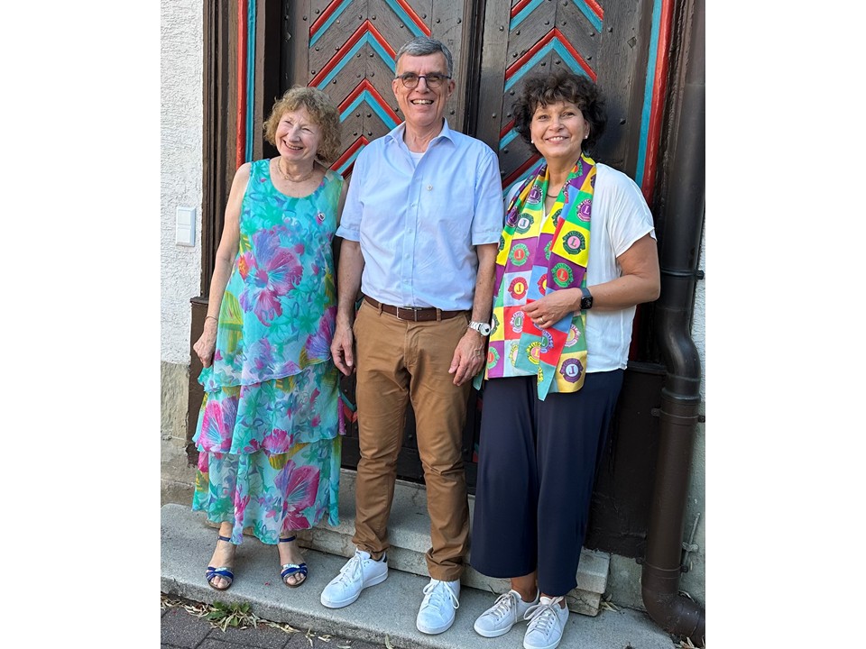Joachim Schmutz dankte Simone Hersacher-Fröscher für ihren hohen persönlichen Einsatz und ihr großes Engagement. Beispielhaft erinnerte er an eine denkwürdige Jumelage-Reise mit dem Straßburger Partnerclub, die deutsche und französische Lions im Mai 2025 nach Leipzig geführt hatte: „Leipzig wird uns in bester Erinnerung bleiben. Damit hast du Maßstäbe gesetzt“, rief er seiner Vorgängerin zu. Die besondere Freundschaft mit dem elsässischen Lions Club Straßburg-Kochersberg liegt auch dem neuen Präsidenten am Herzen: „Unsere Partnerschaft wurde im Juni 1995 begründet. Ich freue mich, dass wir praktisch zeitlich mit meinem Amtsantritt unser 30jähriges Partnerschaftsjubiläum begehen können.“ Ilonka Gaillac, neue Präsidentin des Straßburger Clubs, überbrachte die besten Wünsche der Freunde jenseits des
