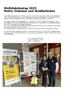 Lions Deutschland hat sich dem Thema damals angeschlossen und befasst sich dabei speziell mit Diabetes–Prävention.