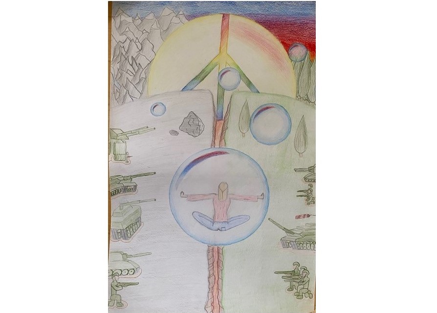 Gedanken zum Bild: "Mein Traum: Mit Freude und Liebe kann der Krieg überwunden werden.“