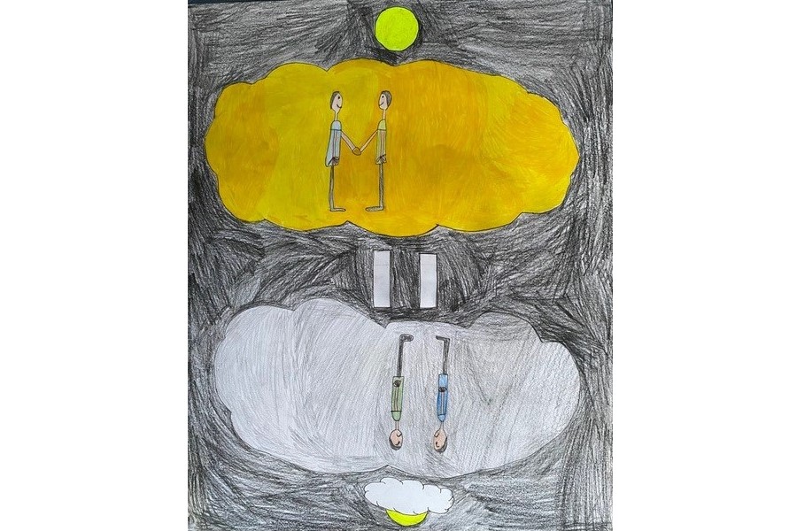 Das Motto in diesem Jahr war kein einfaches – Miteinander. Einig. Ihr habt Euch viele Gedanken dazu gemacht, habt Bilder daraus gemalt und Eure Kunstlehrer/innen haben Euch bestimmt in den Prozessen gut begleitet.